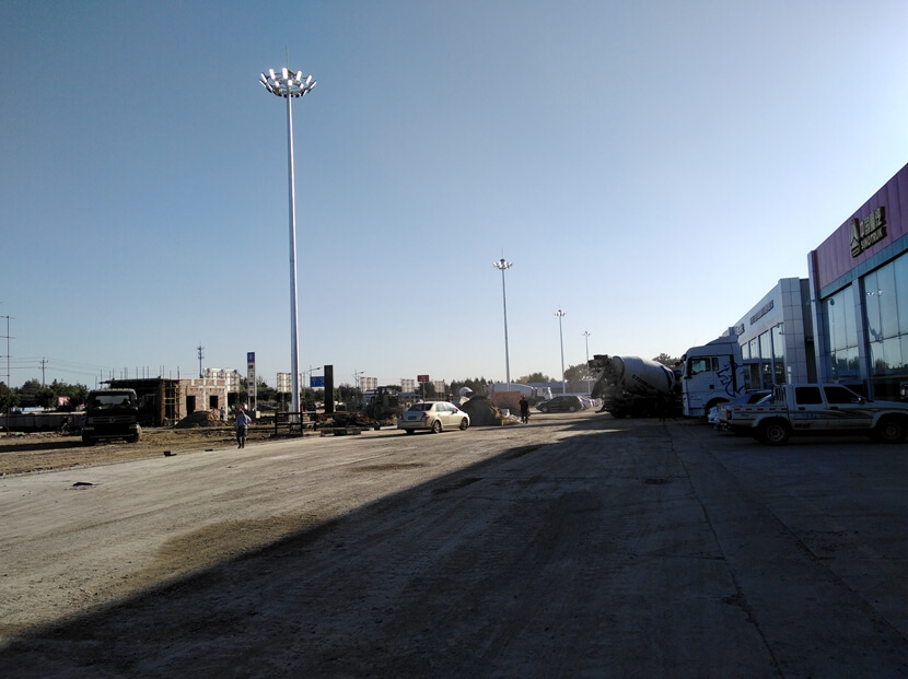 北京重卡4S店停車場照明工程,本次廣場場區(qū)共安裝15套12米中桿燈和6套20米